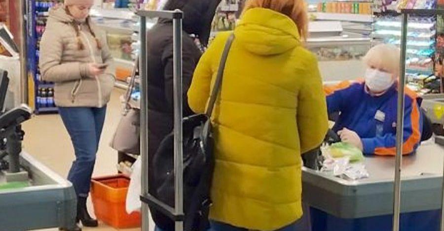 Касирка їй каже: – Ой, жінка, y вас з голови … йде кров! Вам погано? – Та ні, все добре, – відповідає! Але касирка не здається і кричить: “Охорона-охорона, тут жінці погано!” А вона кричить, що все добре, і хоче швидше йти. Охоронці підійшли до мадам, посадили її на стілець і спробували надати першу допомогу.