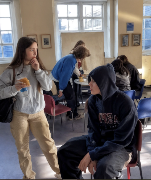 All’ora di pranzo mi ritrovai, come sempre, seduta da sola. Poi accadde qualcosa di inaspettato: Liam, un compagno con cui avevo scambiato poche parole, si sedette di fronte a me.