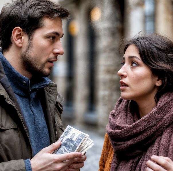Le luci della città si riflettevano sull’asfalto bagnato quando, all’improvviso, un uomo malridotto apparve davanti alla macchina, bussando al vetro.
