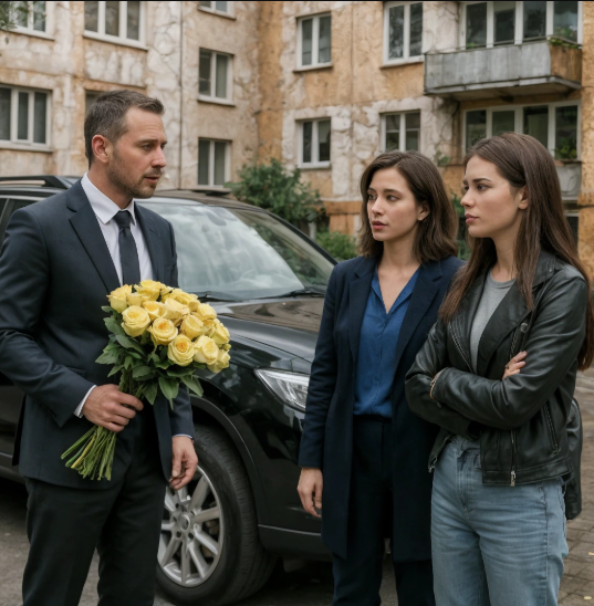 Le rose che teneva in mano caddero sull’asfalto bagnato, perdendo petali come promesse infrante.
