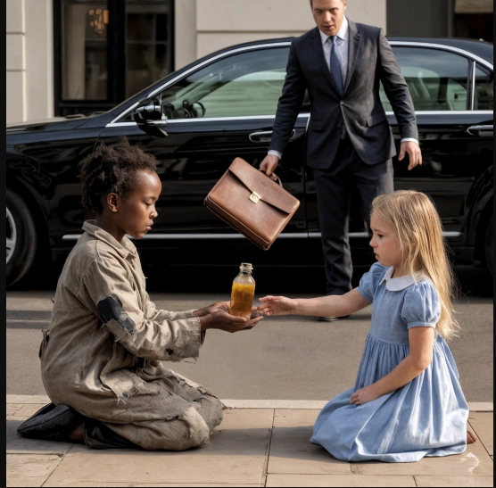 Lui le corse incontro e la strinse, singhiozzando. Rimasero così, padre e figlia, a piangere stretti in mezzo alla piazza, mentre accanto a loro Mera teneva al petto la bottiglietta: la bambina che aveva donato a un miliardario ciò che i suoi soldi non erano riusciti a comprare.