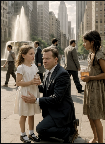 Una ragazzina della sua età stava accanto alla fontana, scalza sullo stone freddo. Vestito logoro, capelli raccolti in una treccia arruffata. Non colpiva la povertà; colpivano gli occhi. C’era dentro una promessa di resistenza, una fiammella testarda che sembrava dire: “Non mi spezzerete.”