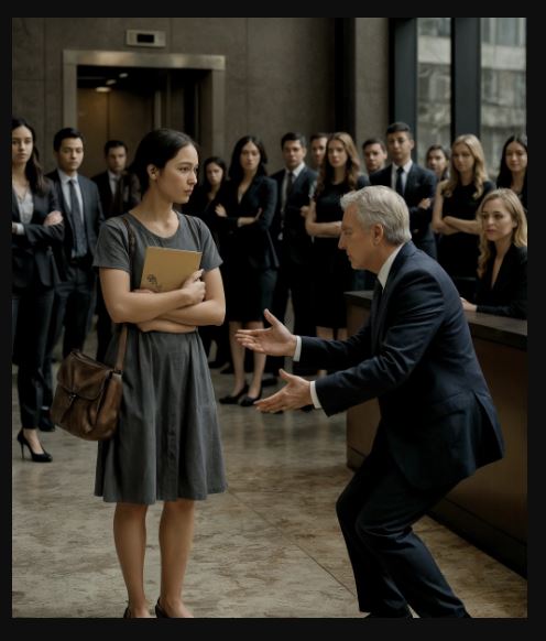 Nel cuore del grattacielo più alto della città—un tempio di marmo lucido e vetro tagliato, dove tacchi e suole lucide battevano un ritmo di potere e i profumi di lusso galleggiavano nell’aria—lei sembrava un corpo estraneo. Le ballerine consunte stridevano a ogni passo, la borsa di pelle, graffiata e stanca, scivolava da una spalla piegata dalla fatica. I bisbigli arrivarono rapidi, sottili come lame mascherate da risatine.