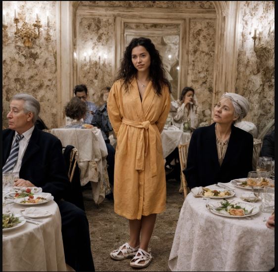 Quando varcai la soglia del ristorante con addosso un accappatoio di spugna arancione, acceso come una carota fresca, e pantofole da casa con pom-pon rosa, il cameriere rimase interdetto: faticava visibilmente a credere che fossi la moglie del festeggiato. Giuro, per un istante gli tremò una palpebra, come se stesse decidendo se davanti a lui ci fosse una squilibrata o una candid camera.