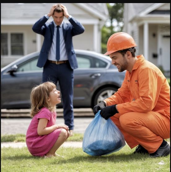 Non parlava. Ma applaudiva quando l’uomo sollevava i bidoni, indicava i suoi guanti sporchi, seguiva i suoi movimenti come si seguirebbe un mago. Ogni gesto di Daniel — perché avrebbero scoperto presto il suo nome — la affascinava.