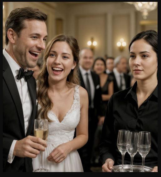 In fondo alla sala, quasi nascosta nell’ombra, c’era una donna in camicia nera da cameriera, i capelli raccolti con cura, un vassoio di bicchieri in equilibrio sulla mano.