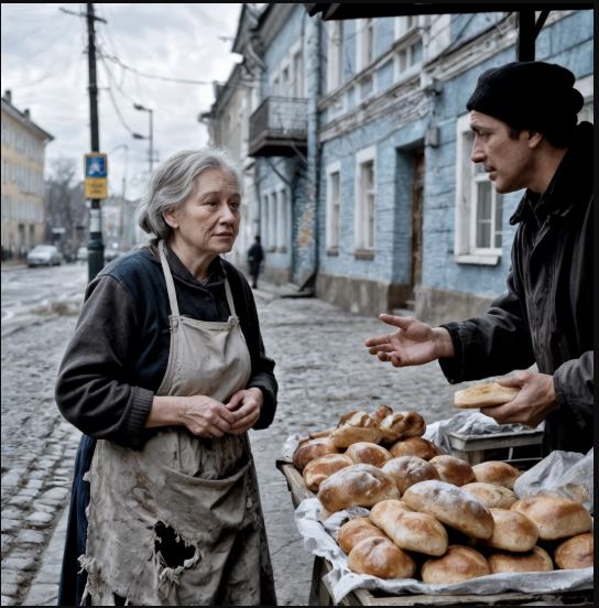 — Figliola… dammi almeno un quarto di pagnotta — chiese, quasi senza voce. — Te lo restituisco domani, giuro. Mi gira tutto… non reggo più.