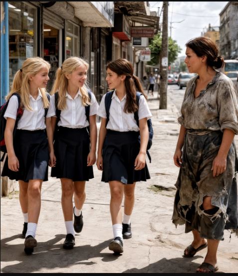 Ogni pomeriggio, Clara percorreva lo stesso tragitto insieme alle sue due migliori amiche, Mia e Jordan: Maple Street, il profumo del panificio all’angolo, poi il parco vecchio con i giochi arrugginiti e le pozzanghere che riflettevano il cielo. Lì, su una panchina sempre uguale, se ne stava una donna dai vestiti consumati e strappati, stretta a un orsacchiotto spelacchiato come fosse l’unica cosa rimasta al mondo.