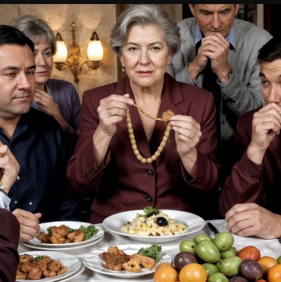 La conversazione si spense di colpo. Eravamo una quindicina: gente “di casa”, insegnanti, vicini, parenti alla lontana. Davanti a lei, sul velluto del cofanetto, la collana riposava come un trofeo: oro e topazi grandi, che sotto il lampadario lanciavano lampi caldi.