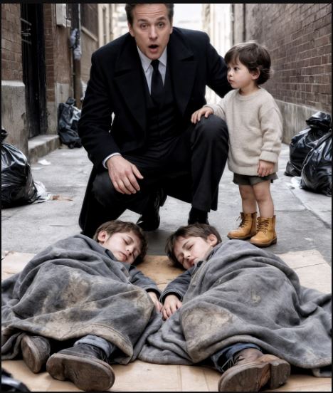 Si inginocchiò davanti ai bambini, senza curarsi del completo su misura, del fango, dell’umiliazione. In quel vicolo non contavano più le apparenze.