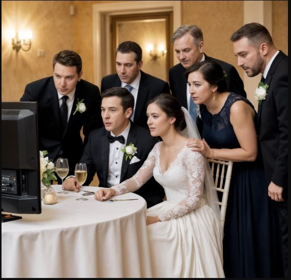 La sala del ricevimento scintillava di lampadari, bicchieri dorati e rose bianche alte come colonne. Gli invitati ridevano, lo sposo posava accanto ad Amanda con un sorriso teso, e la band fece una pausa annunciando un “video speciale”.