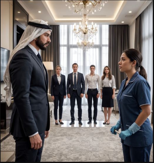 Il giorno dopo, la direttrice la fece chiamare alle otto in punto. Nel salone c’erano più persone: uomini in giacca, due donne eleganti e un interprete ufficiale con una cartellina lucida. Lo sceicco salutò appena e parlò in arabo, ignorando di nuovo il traduttore.
