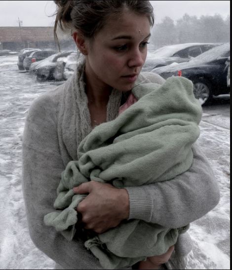 Stava vicino a un lampione, senza macchina, senza passeggino, senza borse. Solo lei e quel vento cattivo. Stringeva un bambino al petto e sembrava che l’unica cosa che la tenesse in piedi fosse proprio lui. Indossava un maglioncino leggero; il piccolo era avvolto in un asciugamano troppo sottile, più da cucina che da cameretta. Le gambe le tremavano, le labbra avevano iniziato a perdere colore.