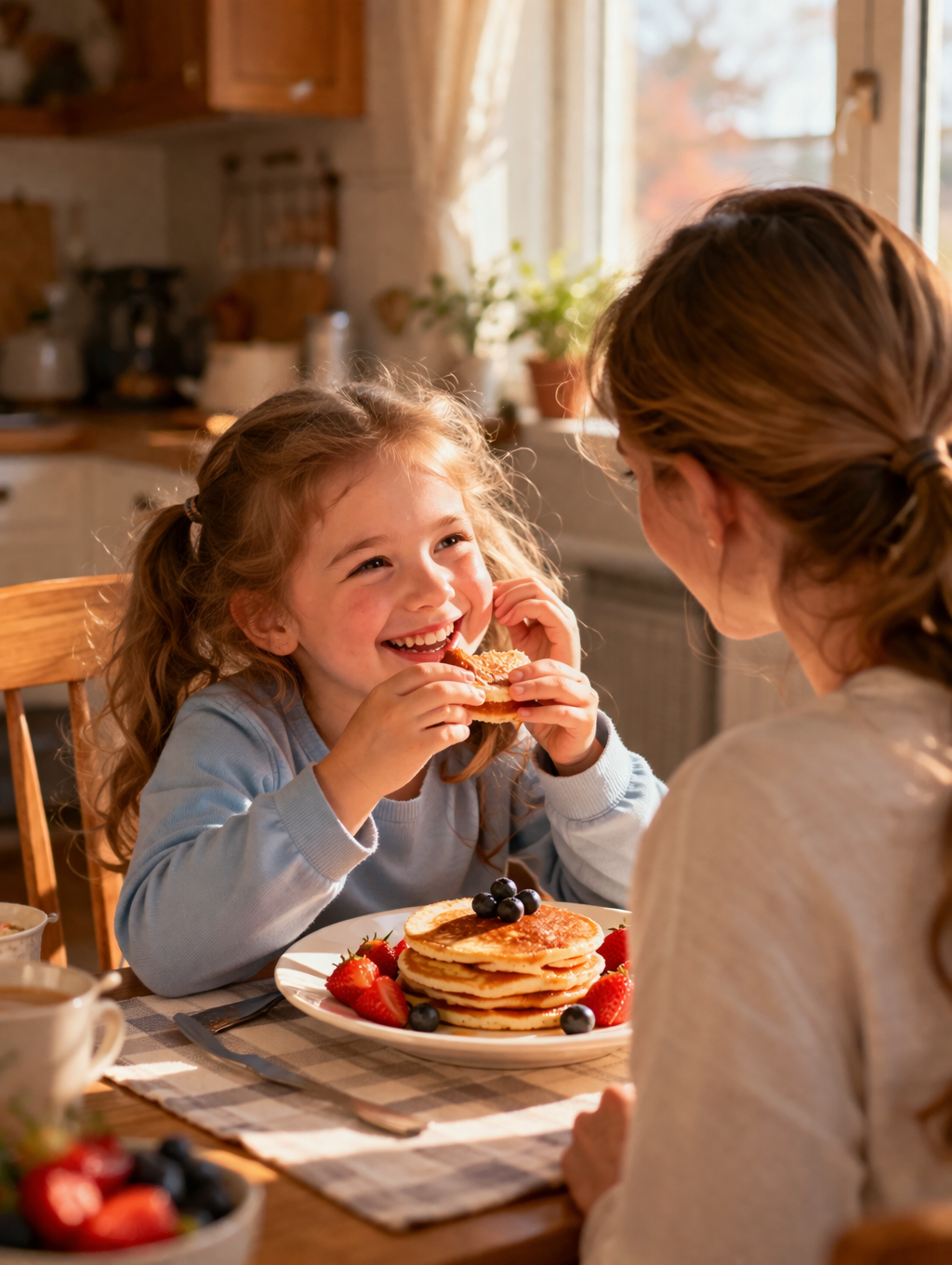 In pochi minuti, la cucina era coperta di farina e appiccicosa di sciroppo. Mia stava sul suo sgabello, la lingua fuori in segno di concentrazione mentre mescolava l’impasto con la sua spatola rosa.
