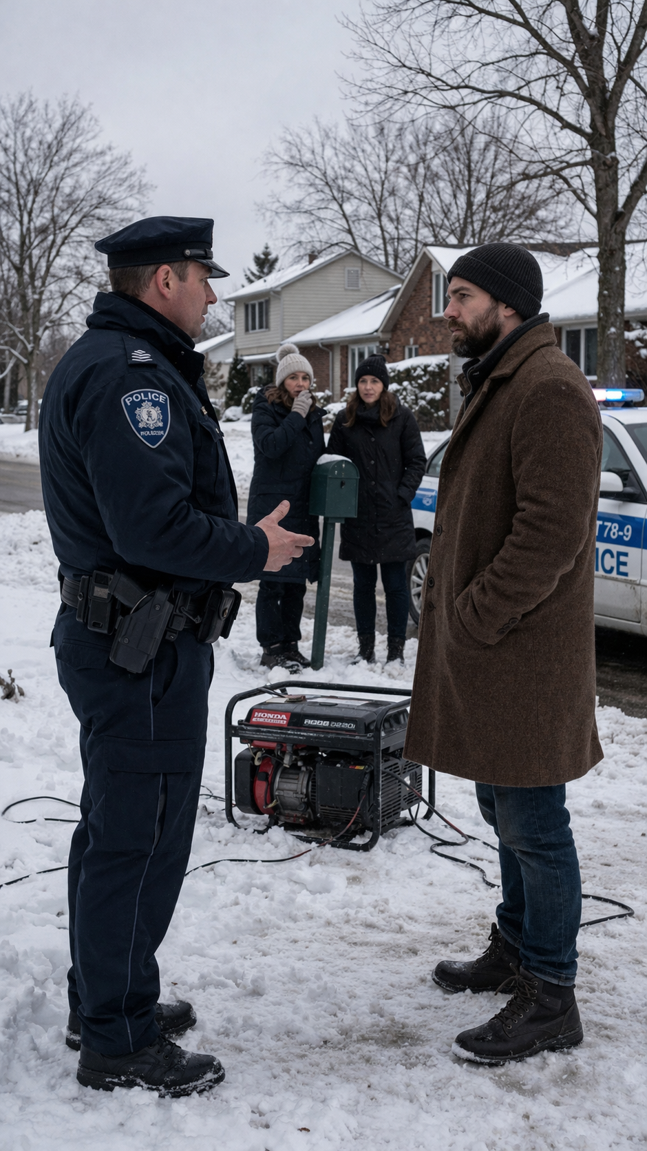 L’associazione dei proprietari ha chiamato la polizia per il mio generatore durante una tempesta di neve—poi l’agente mi ha chiesto un favore