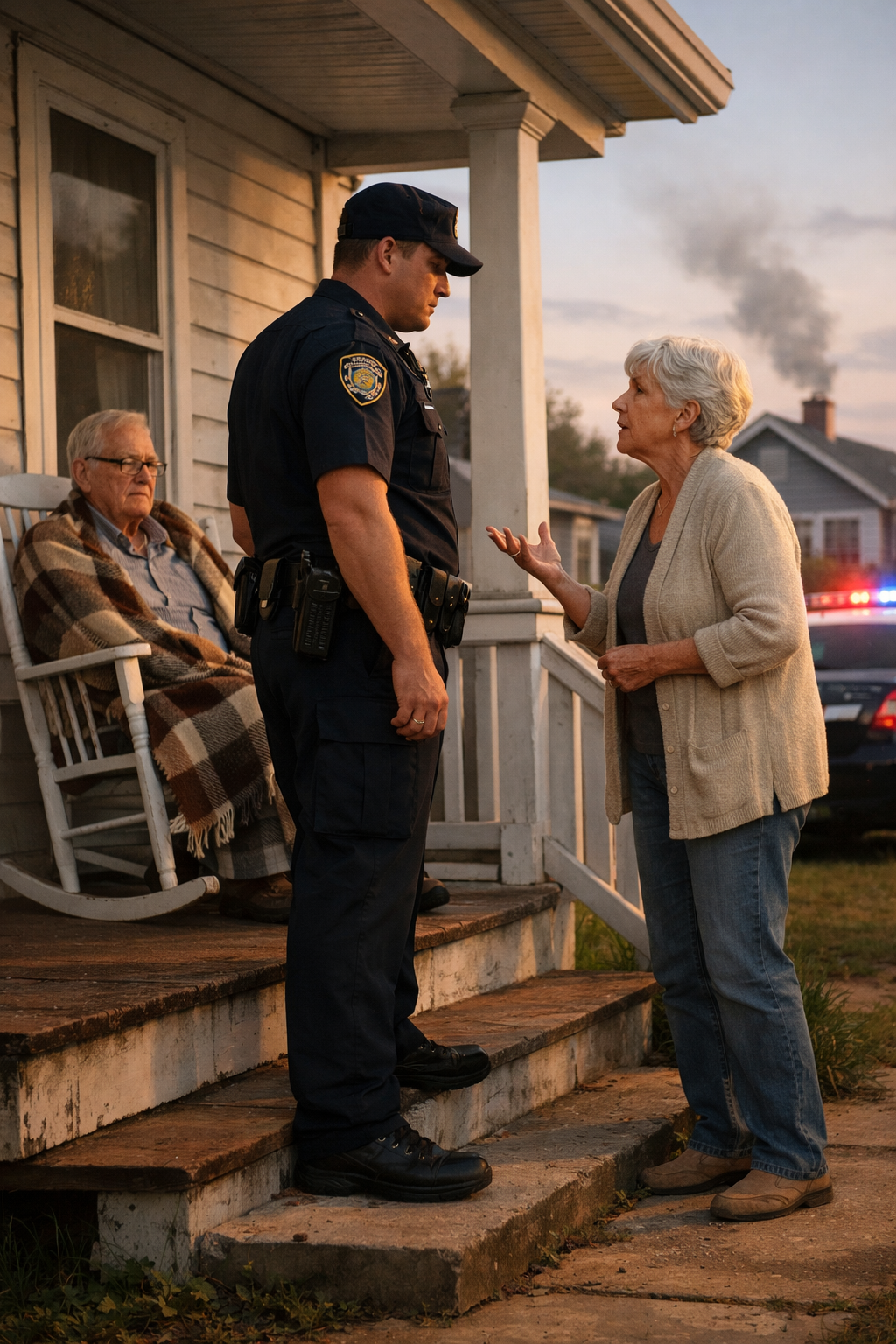 Sulla veranda, avvolta in una coperta e assistita dai paramedici, sedeva una donna anziana dai capelli d’argento e sorprendenti occhi azzurri. Sembrava avere circa ottant’anni, fragile ma vigile. Quando mi vide avvicinarmi, il suo volto si sgretolò in un’emozione che non riuscivo a identificare.