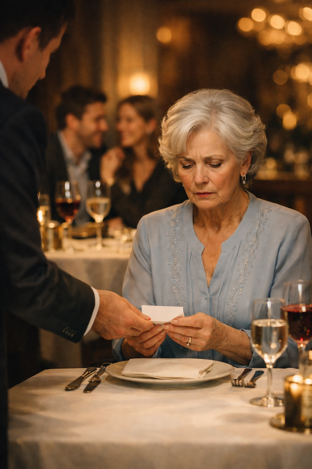Durante la nostra crociera di famiglia, mio figlio sorrideva, mia nuora era impegnata a scattare foto. Una cameriera si avvicinò e mi consegnò silenziosamente un biglietto: “Chiama il 911.” Non mi sono agitata. L’ho piegato e ho fatto un piccolo cenno. Venti minuti dopo, tremavano davanti alla sicurezza.