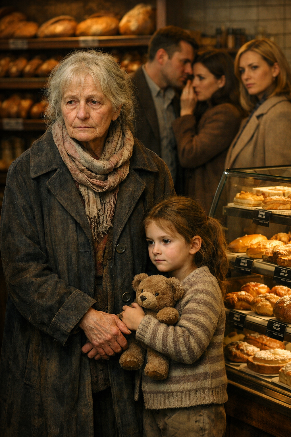 L’intera panetteria rimase in silenzio sbalordito mentre la bambina premeva le dita contro il vetro, vedendo finalmente il volto di sua madre chiaramente per la prima volta.