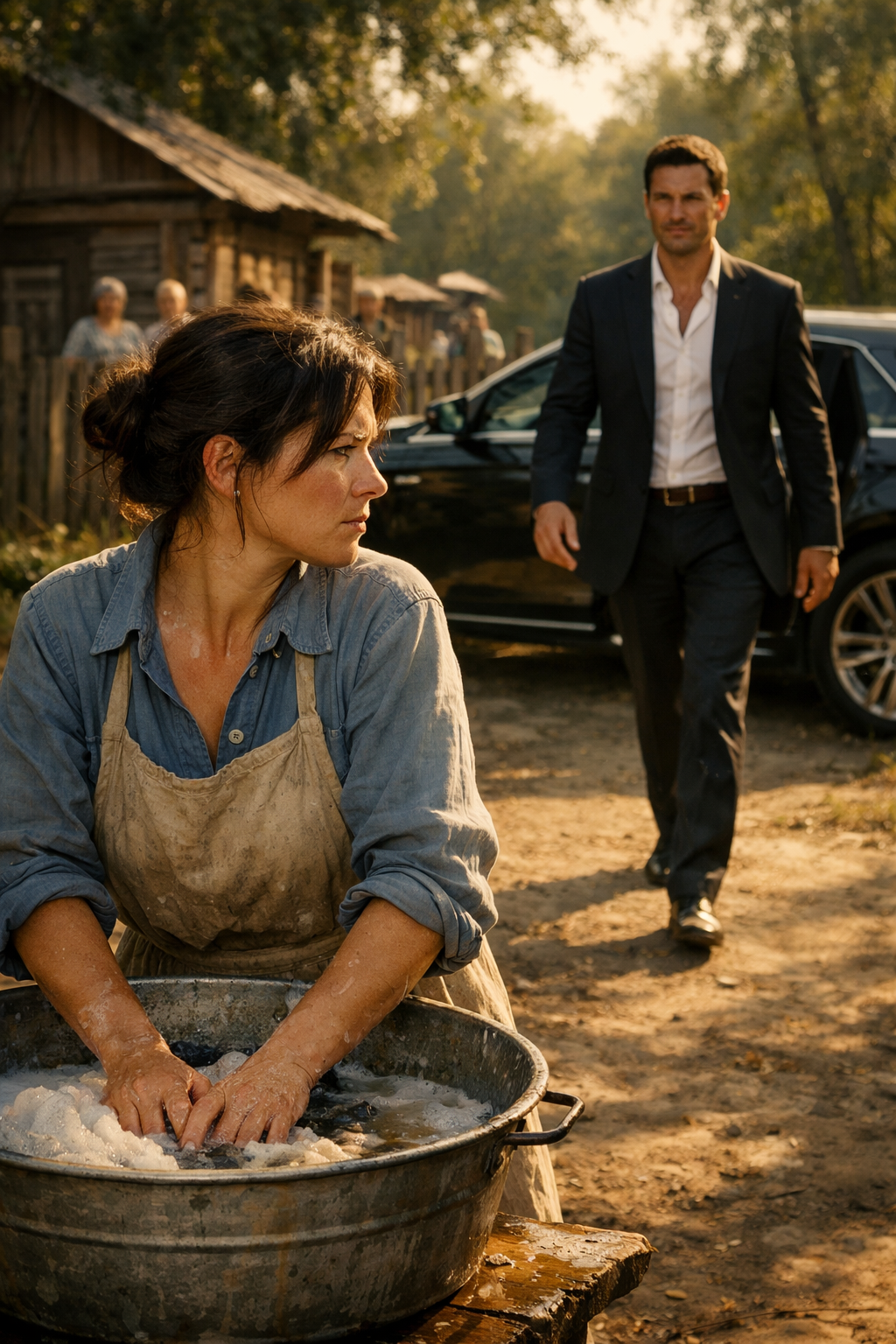 Era nel cortile della sua piccola casa, gomiti umidi, mani rovinate dal sapone e dall’acqua, piegata su una bacinella di metallo ammaccata piena di bucato, quando un’ombra attraversò il terreno. Un momento prima c’erano solo la pesante afa estiva, il ronzio delle cicale e il familiare peso degli sguardi del villaggio sulla sua schiena. Il momento dopo, un’elegante auto nera con i vetri scuri come pietra lucidata si fermò davanti al suo cancello rotto.